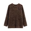 Kaslead New Women Clothes Western Style Leopard Print Jacquard Round Neck Loose Pullover Knit Sweater Sweater
