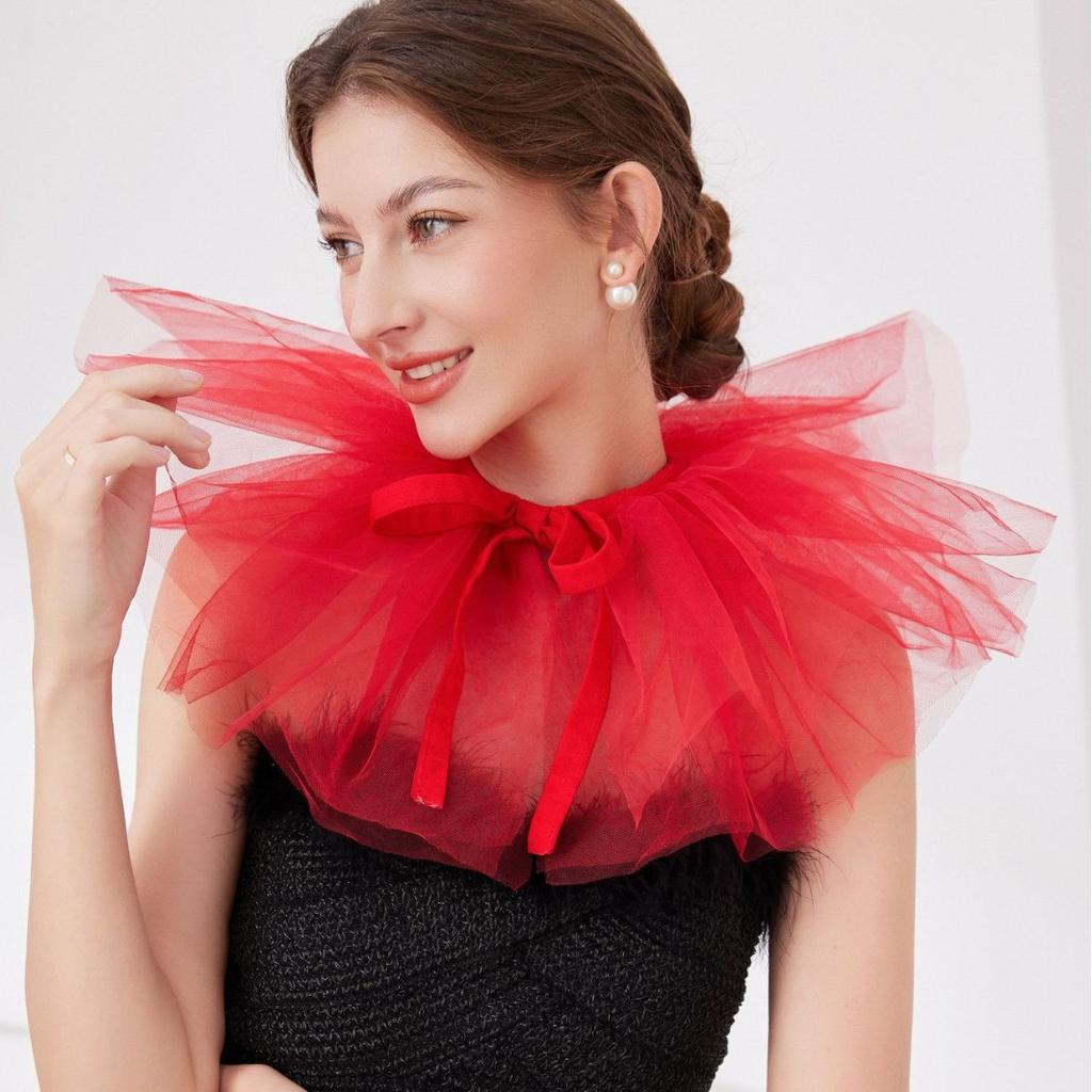Multi Layer Mesh Fake Collar Decorative Necklace Ties Blue Red Detachable Neckwear for Fake Collar Clothing Decororation Mujer