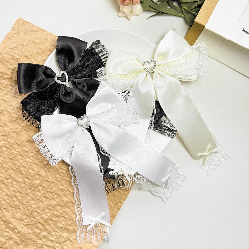 2pcs Long Ribbon Bow Hair Clips Long Tassel Bow Hairpins Lace Embroidered Bow Barrette With Rhinestone Heart For Women Girls