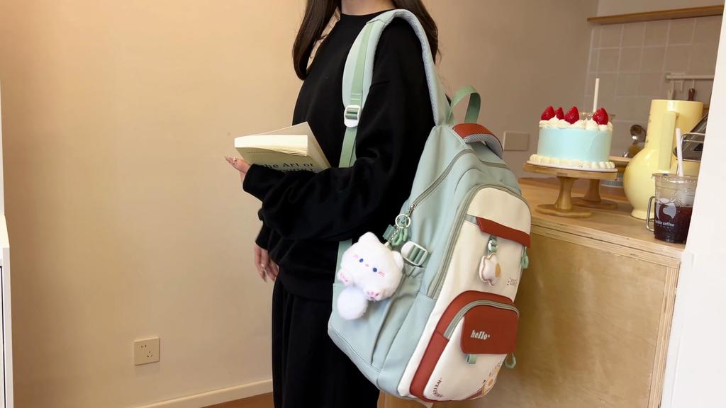 Large Capacity Junior High School Schoolbag Women's Color Contrast Backpack