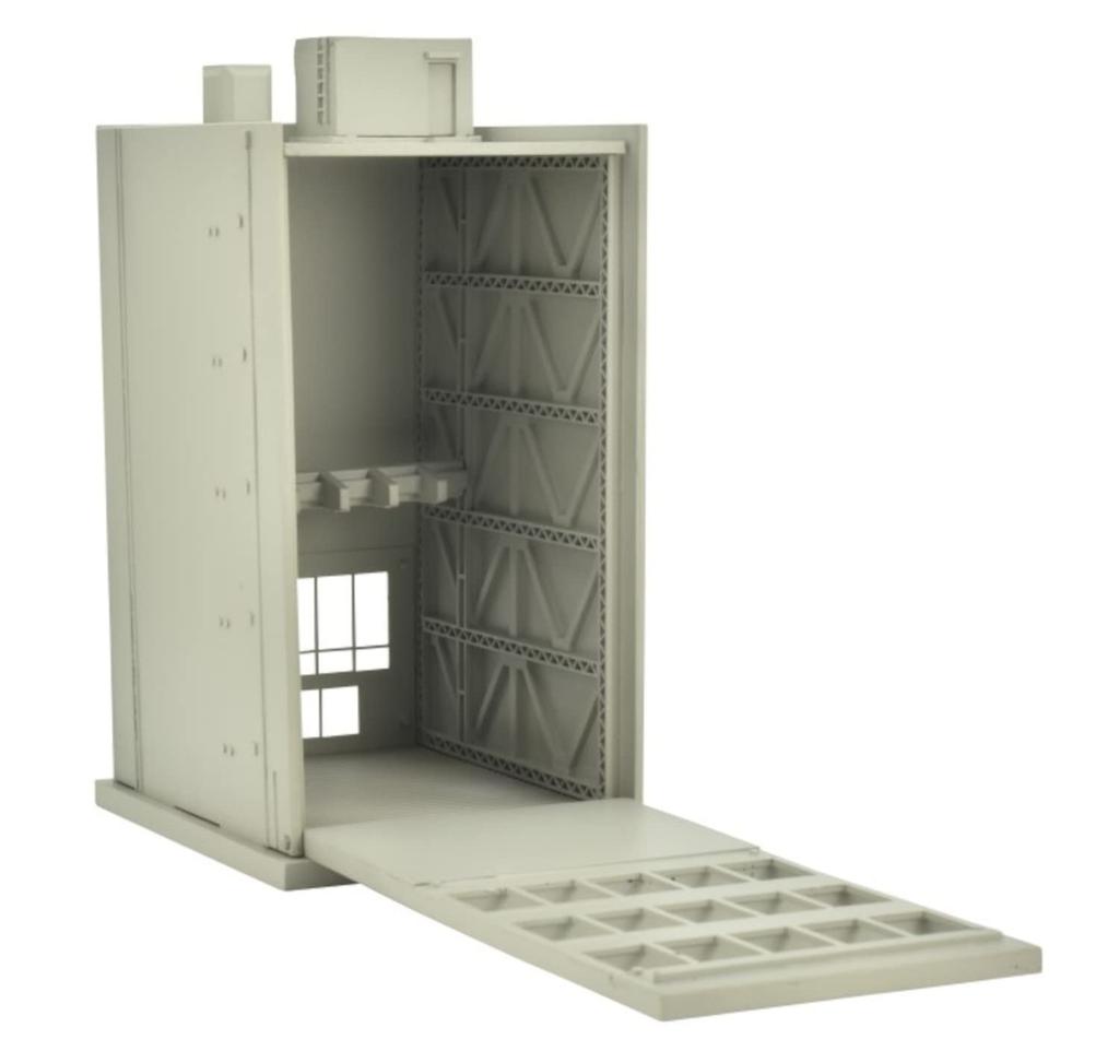 The front wall is retractable, and the included gun rack allows you to store the "GeoCom Weapon Series" inside the building.