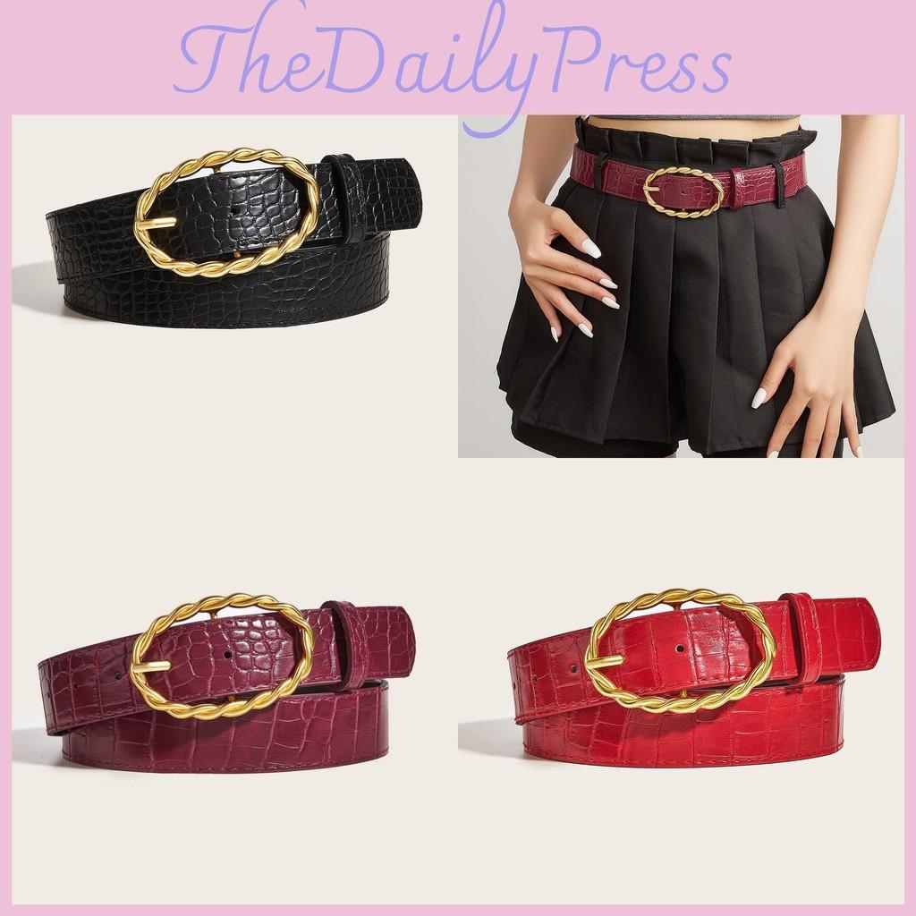 Womens Grain Stone Pu Leather Belt With Twists Oval Metal Buckle For Everyday
