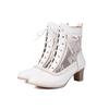 Women Mesh Boots Female Summer 2025 Leather Chunky Med Heels Shoes Size 48 Laciness Bandage Decor