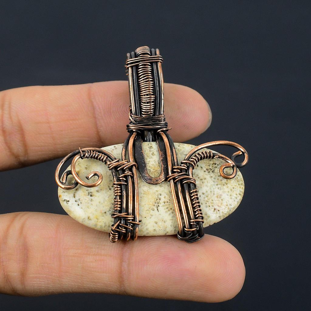 Fossil Coral 999 Copper Wire Wrapped Pendant Handmade Gemstone Jewelry, Gifts For Wife Brand New Jewelry Pendant