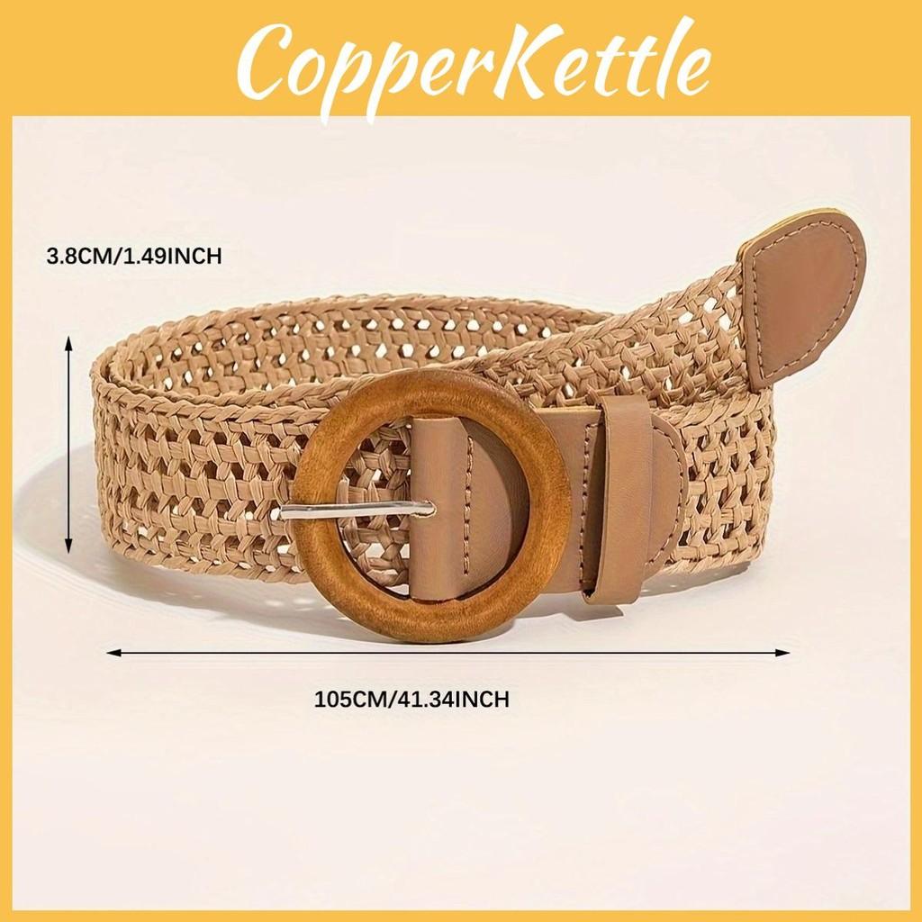 This woven cotton linen belt features a round buckle with a J-shaped clasp, combining lightweight comfort and durable construction, it offers a breathable design suitable for summer wear. Ideal for pairing with casual dresses or skirts, it enhances summer outfits. Wipe clean with a damp cloth to maintain its appearance.
