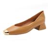 H976-6 Low-heeled Single Shoes Women's New French Commuter Metal Square Head Soft Leather Women's High Heels Grandma Shoes Sheepskin Pad