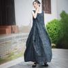 Johnature Women Vintage Sleeveless Dress O-Neck Jacquard Summer High Quality Female Dress