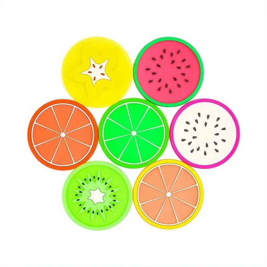 7pcs Silicone Coasters Set, Fruit Design Non-Slip Cup Pads, Creative Assorted Fruit Slice Drink Mats For Coffee & Tea