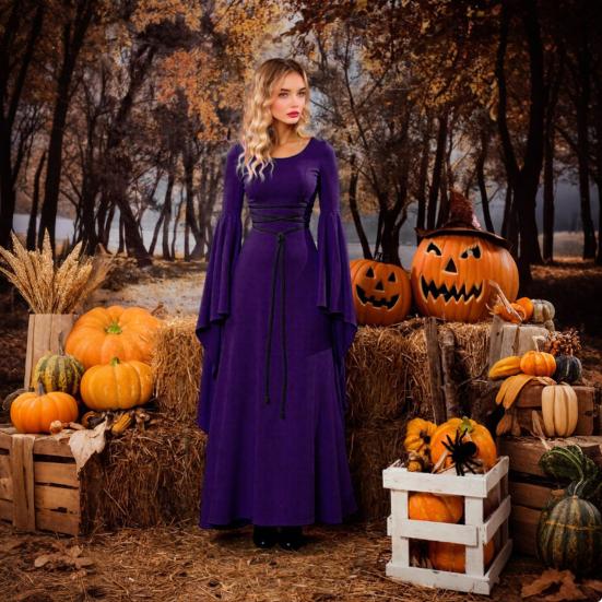 Versatile Styling Options: Pair this dress with Halloween makeup, bold jewelry, or hair accessories to create a stunning holiday outfit that exudes mystery and allure. Elevate your ensemble for period dances, themed parties, or immersive role-playing adventures.