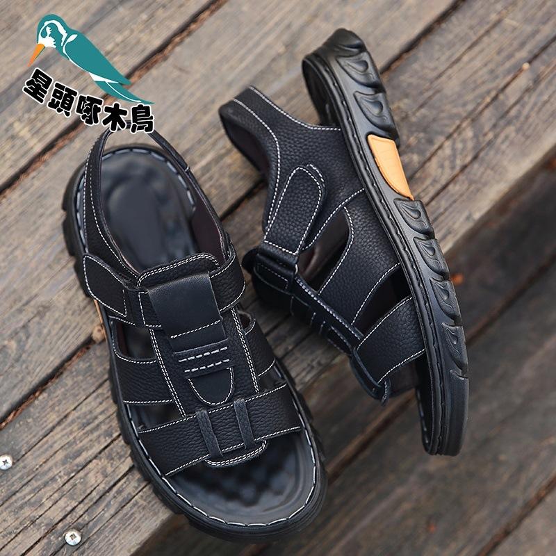 Star-headed Woodpecker Summer New First-layer Cowhide Casual Beach Shoes Wear-resistant Non-slip Medium and Old Sandals