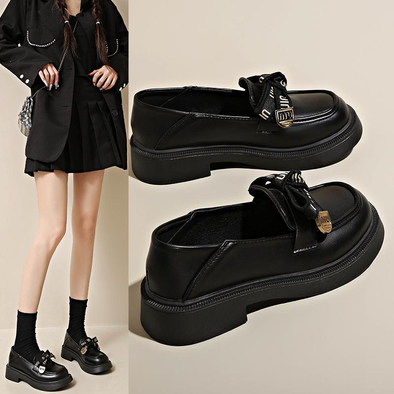 Fashion Soft-soled Platform Loafers Women's Autumn 2025 New Thick-heeled Bow One-pedal Small Leather Shoes