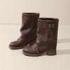 Vintage Western Cowboy Boots Women's 2025 Pleated Pile Boots Heel Belt Buckle Medium Pants Tube Boots Large Size Knight Boots