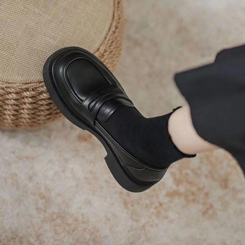 2025 Autumn and Winter Spice Girls Loafers Women's Leather Shoes New Platform College Single Shoes British Black Versatile Shoes