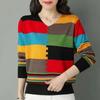 Women's Thin Knitted Sweater Long Sleeve Colorblock Thin Pullover V-neck Knit Loose Top