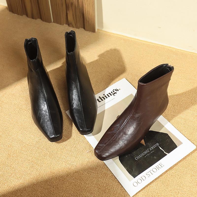 Square Head Thick Heel Short Boots Women's Autumn and Winter New Martin Boots Trendy Chelsea Elastic Thin Boots