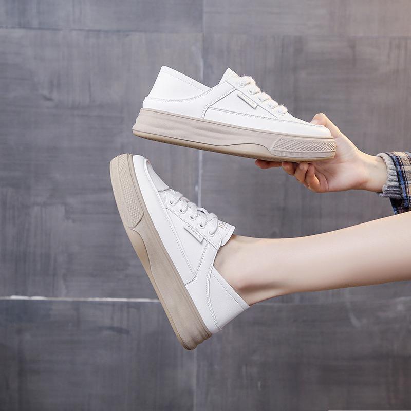 Lazy Two Wear Little White Shoes Women's Autumn New Versatile Flat-bottomed Casual One-pedal Board Shoes