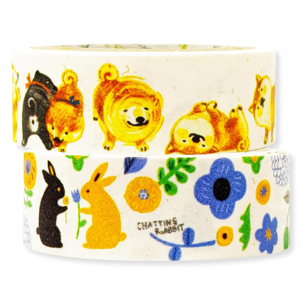 Banana Paper Shiba Shinzi 15mm Set of 2 Rolls Seal-do Tape, Inu, Rabbit, Katoh, Wide, 3m, (bp-tp-30012)