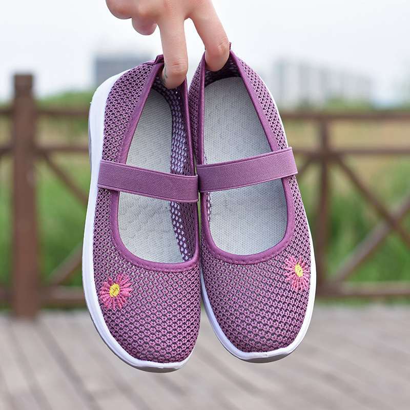 Summer Sandals Women's Word with Old North Cloth Shoes Small Daisies Casual Net Shoes Breathable Soft Sole Middle-aged and Elderly Mother Shoes