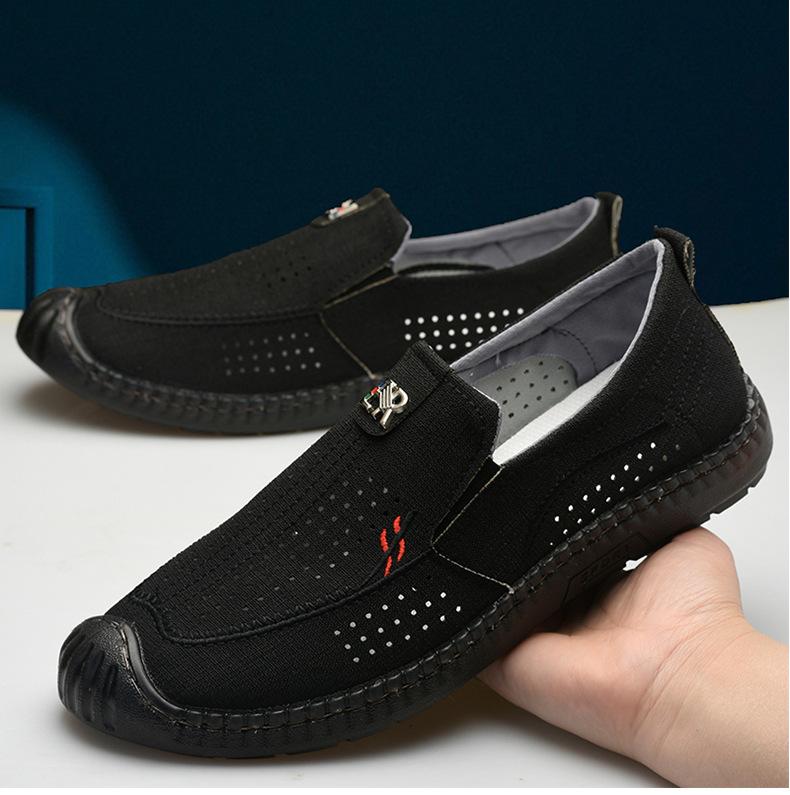 Old Beijing Cloth Shoes Men's Shoes Breathable Single Shoes Net Shoes Summer Casual Soft Sole Linen Mesh One Pedal Canvas Shoes
