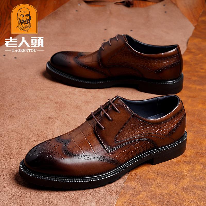 Old Man Head Men's Shoes Dress Leather Shoes Cowhide Business Shoes Casual Leather Shoes Men's Wedding Shoes Crocodile Pattern Guangzhou Shoes 9672