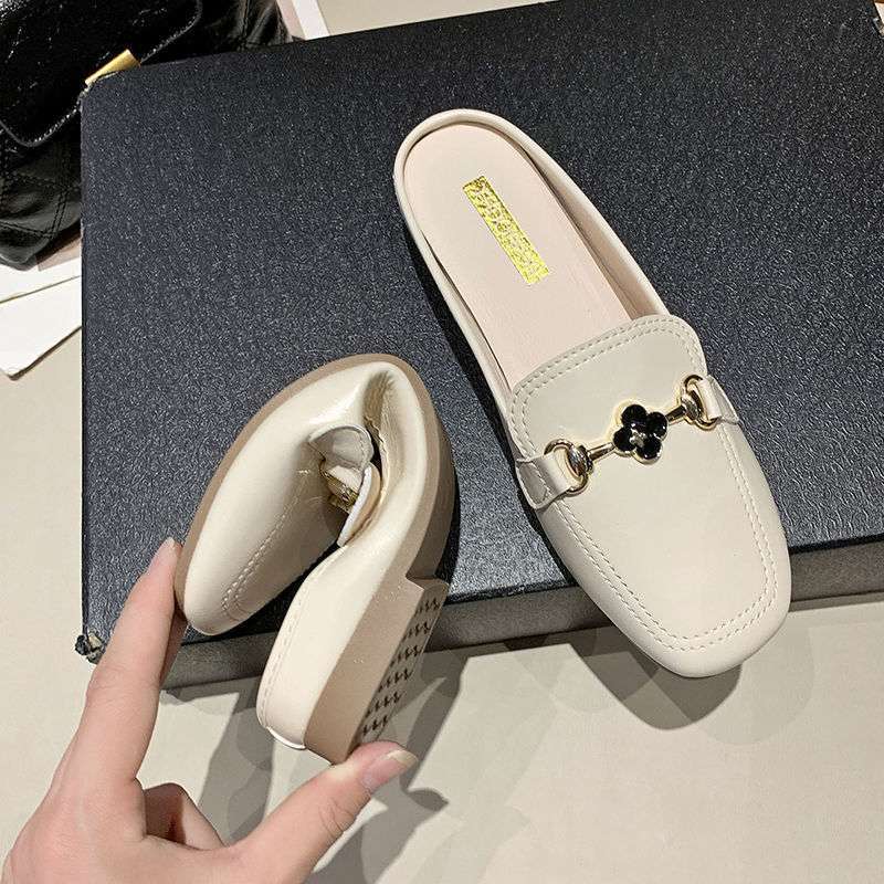 New Slippers Women Wear Square Head Single Shoes Women's Pregnant Women Flat Heels Summer Flat Bottom Lazy Bag Head Half Slippers