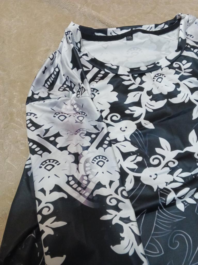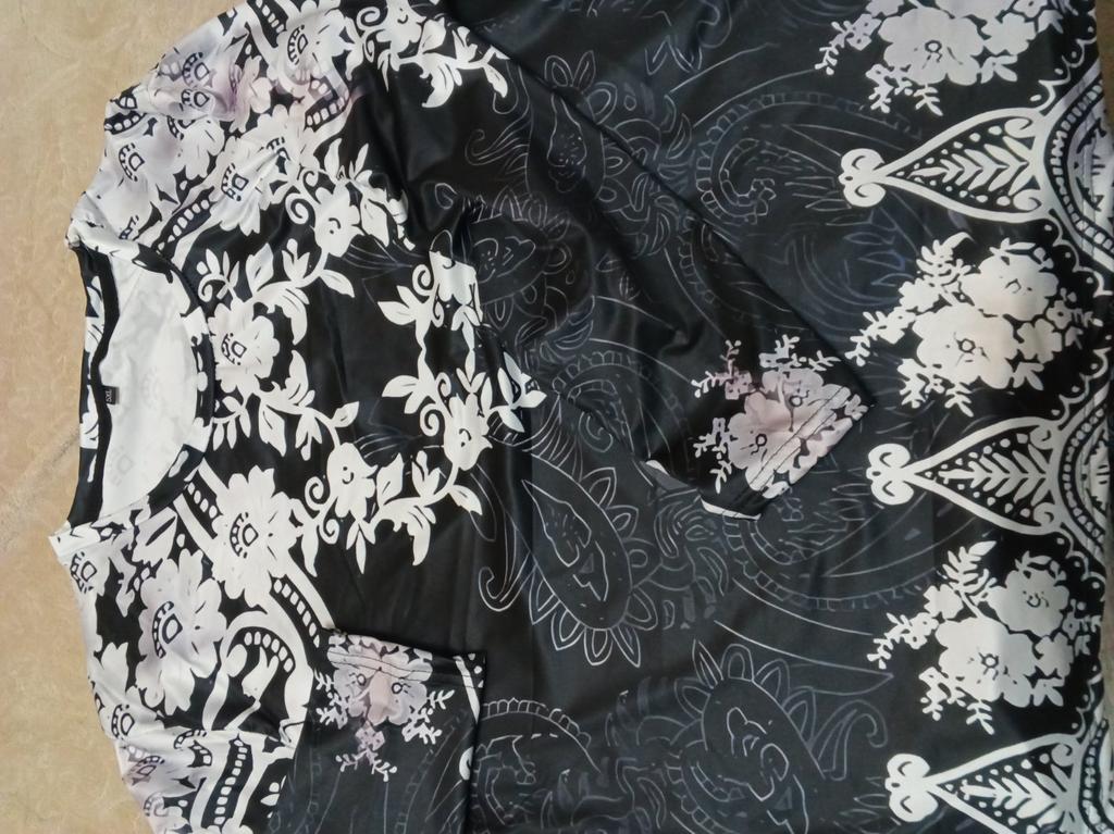 Very blurry pattern, no clarity like in the photo. The bottom pattern does not match, only a third of what is in the photo is on the blouse. Neckline - a very large cutout. If I saw her in the store, I would never have bought her