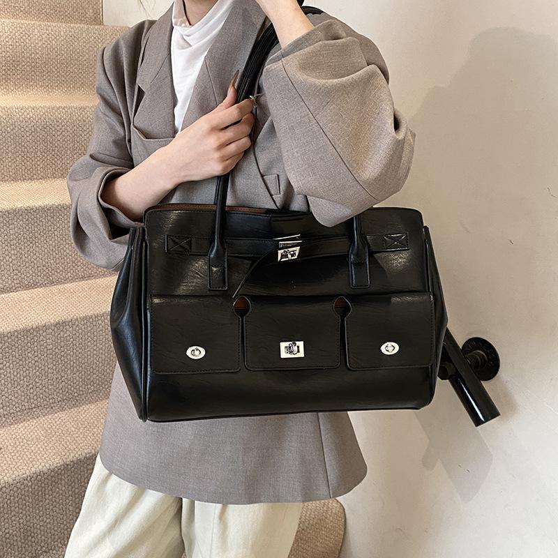 - **Structured Multi-Way Bag Details**: Features a sleek structured tote silhouette with PU material, vintage hardware, and single-shoulder carrying option, exuding professional and classic charm. Multiple color options cater to diverse style preferences.