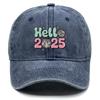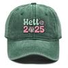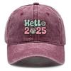 HELLO 2025" Disco Ball Print Snapback Sun Hat, Sports Hat Unisex Trendy Raw Brim Sunshade Adjustable Baseball Hat
