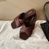 Grape Mother Same Holiday Style Woven Cross Belt Low Heel Cool Slippers Women's Minimalist Style Square Head Versatile Flat Bottom Slippers