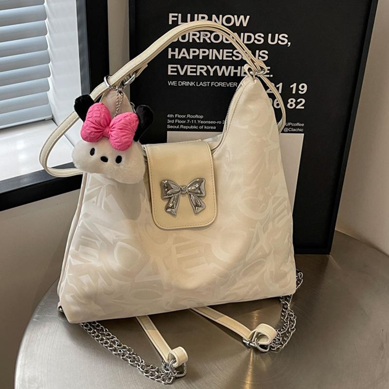- **Structured Multi-Way Bag Details**: Features a stylish structured hobo silhouette with PU material, embossed pattern, plush character charm detail, and versatile carrying options (handheld, single-shoulder, dual-shoulder), exuding playful and practical charm. Multiple color options cater to diverse style preferences.