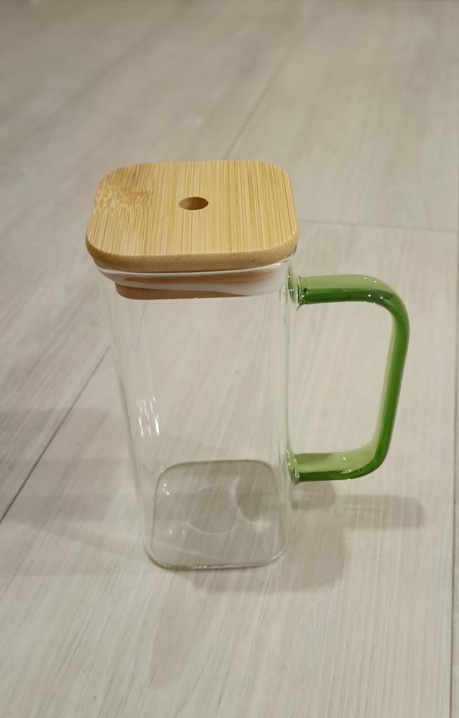 Premium Material: Indulge in the luxury of a square glass cup made from top-tier borosilicate glass. This drinking cup comes with a lid and straw, perfect for enjoying cold beverages like juice, fruit tea, or milk tea in style.