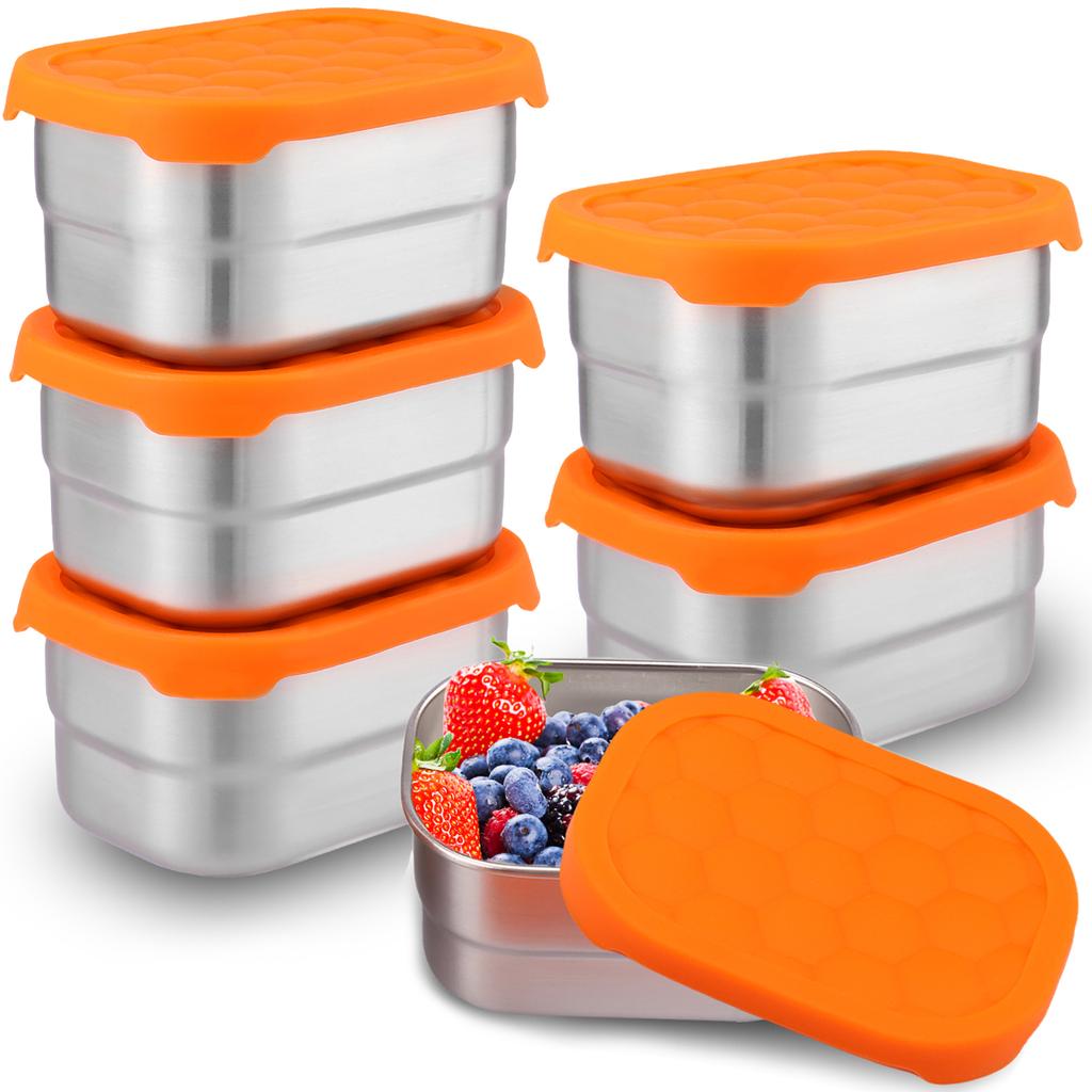 [Stainless Steel Snack Container with Silicone Lid] This stainless steel snack container is made of high quality 304 stainless steel with a 100% leak-proof silicone lid, which is safe and environmentally friendly and reusable, helping to reduce the waste of condiment cups and protecting the environment while saving you money.