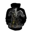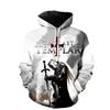 Autumn 3D Knights Templar Printed Hoodies Fashionable Casual Sports Long Sleeved Men's Hooded Sweatshirts
