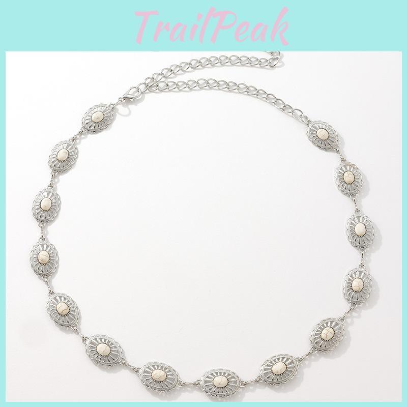 Ladies Hollow Turquoise Metal Waist Chain With Pearl Detailing For Spring And Summer