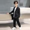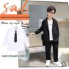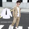 High Street Handsome Three-Piece Boy's Suit: White Long-Sleeve Shirt & Street Style Casual Set for Kids