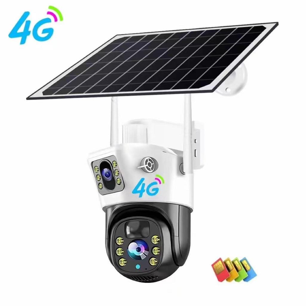 V380 Dual Lens Solar-Powered 4G Wireless Night Vision Security Camera with Low Power Consumption