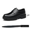 Men's Formal Leather Shoes, Autumn Style, 8CM Inner Lift, Thick Sole, Lace-up, Trendy Big Toe Design.