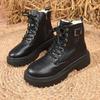 Women's Large Size Soft Sole Leather Winter Warm Fur One Snow Boots Padded Lined Ankle Boots Non-slip Hiking Casual Sports Cotton Boots Martin Boots