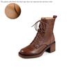 Fashion 2025 Winter Genuine Leather Women Boots Round Toe Thick Heel Lace Up Fashion Ankle Boots Retro Boots Platform Shoes Heels Grown