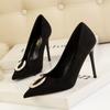 Fashion Newest Kitten Heels Metal Rhinestones Woman Pumps Wedding Shoes High Heels Shoes Black Apricot Sexy Party Shoes Large Size 41