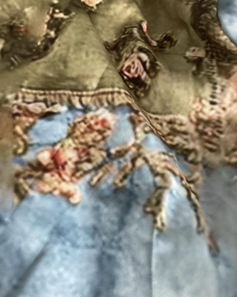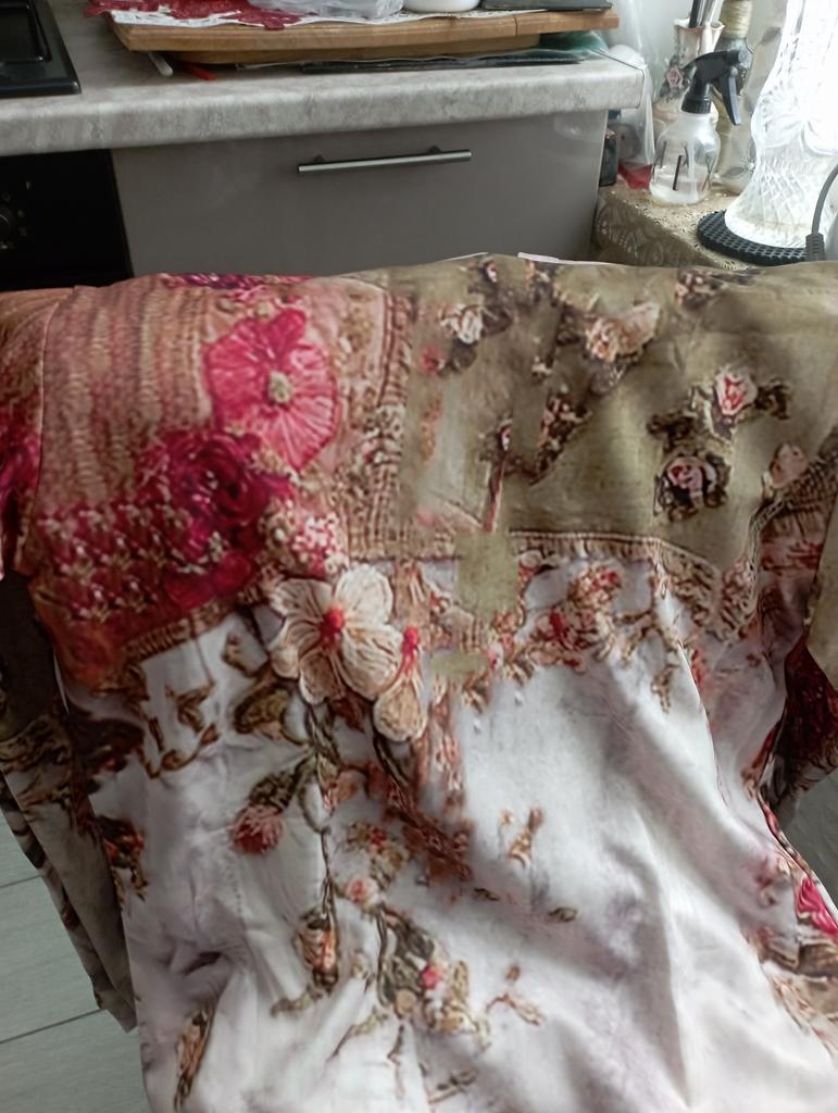 Runs very small, barely fit. The flowers are not embroidered, but printed. Looks worse in real life than in the photo.