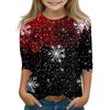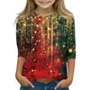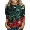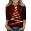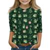 Christmas Day Print Tops For Youth Girls 5-16 Years Round Neck 3/4 Sleeves T-Shirts Trendy Tops Outfit Tees