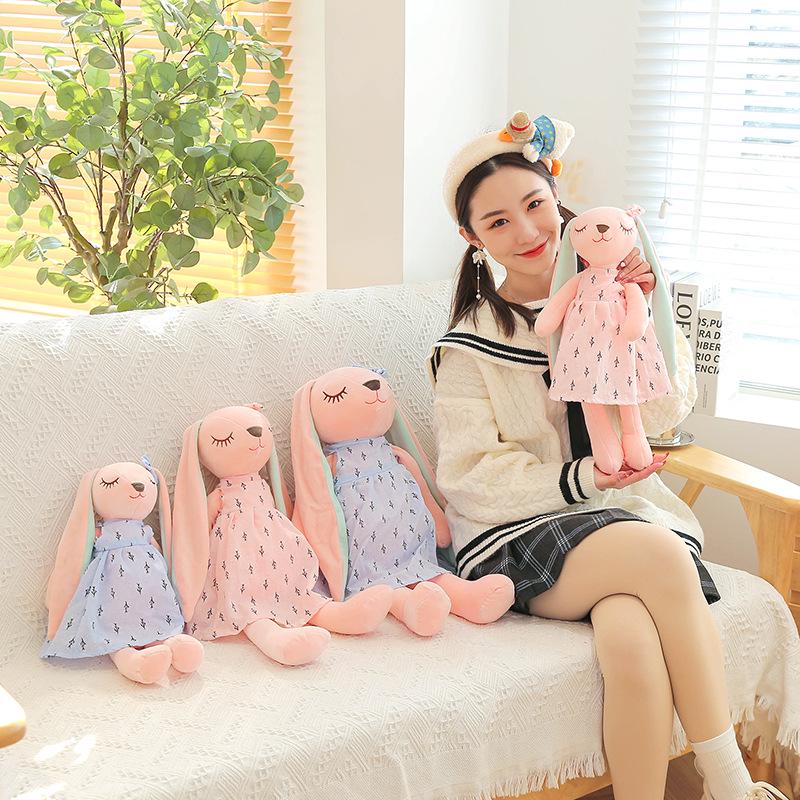 Cross-border Long-eared Angora Plush Rabbit Doll In Floral Dress - Children's Pillow Gift
