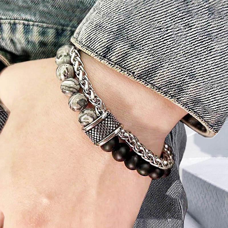 Titanium Steel Frosted Tiger's Eye Men's Trendy Bracelet