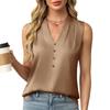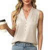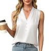Women Summer Sleeveless V Neck Satin Solid Color Button Slim Fit Vest Top