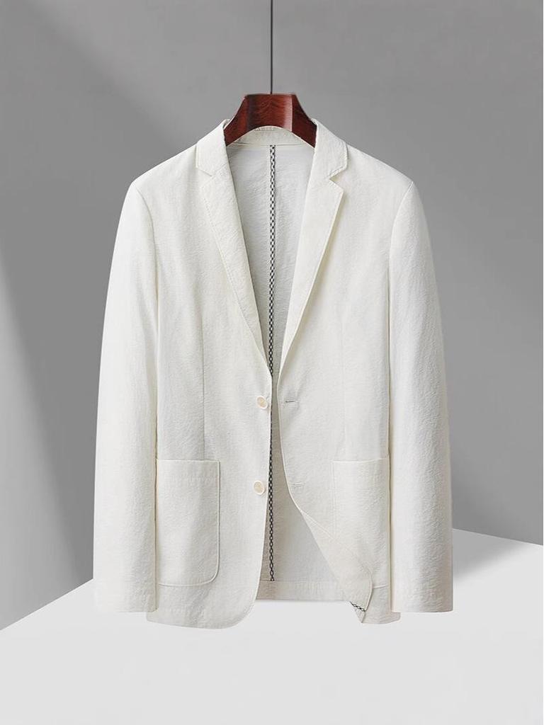 Elevate your style with this sophisticated men's blazer, perfect for the spring and summer seasons of 2025. Crafted from premium cotton, this thin, single-breasted suit jacket offers a tailored neckline and features long sleeves for a classic, yet contemporary fit. Its solid color design is enhanced by a slightly wrinkled texture, adding a touch of relaxed elegance to your wardrobe. Ideal for both casual outings and more formal occasions, this versatile blazer provides a timeless look that complements any ensemble.
