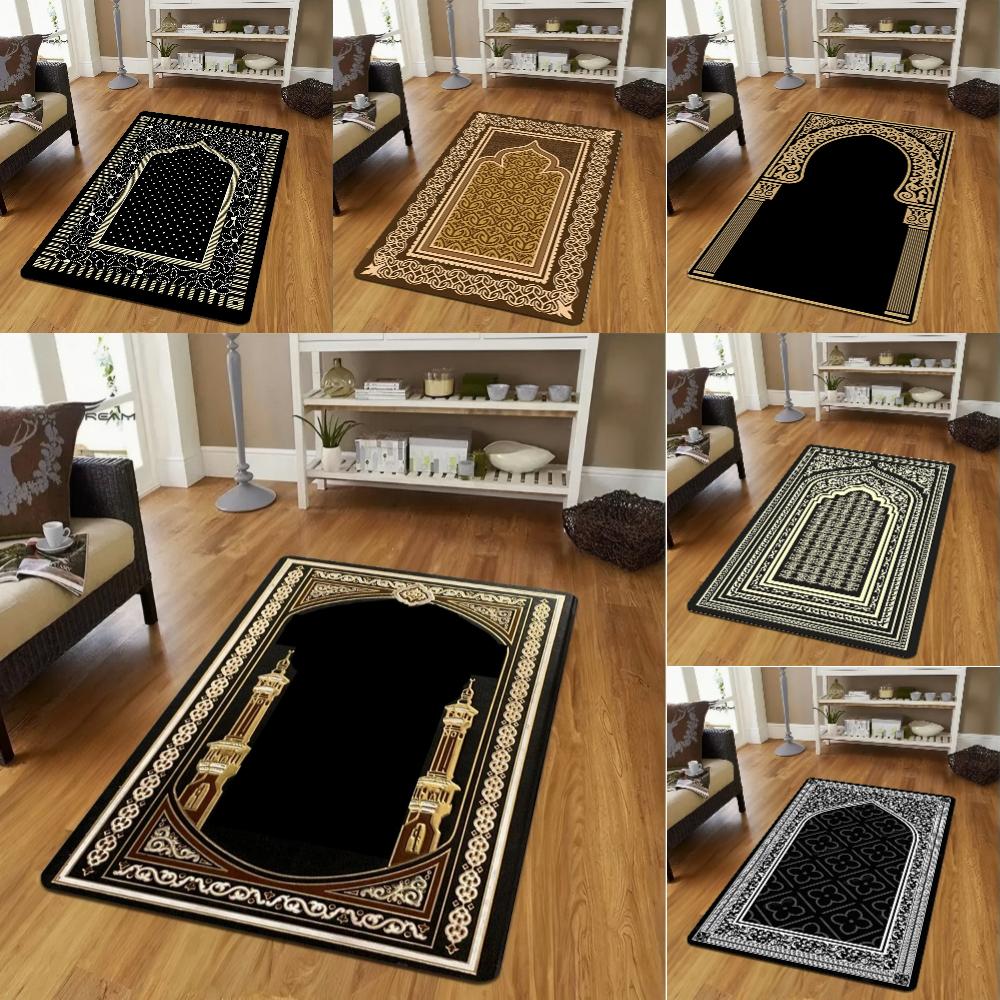 Muslim Prayer Mat Black Carpet for Living Room Sofa Rug Home Decor Bedroom Bedside Rug Lounge Hallway Floor Mat Doormat Washable