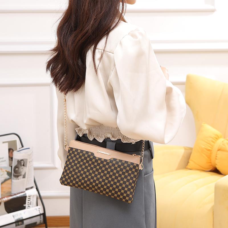 Women's Bag New Printed Contrasting Color Shoulder Bag Label Decorative Chain Crossbody Small Square Bag Casual Change