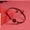 Handmade Lucky Cinnabar Clover & Flower Braided Red Rope Bracelet