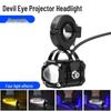 High-Intensity LED Motorcycle Spotlight with Four-Color Devil Eye and Strobe for Electric Vehicles - Adjustable High/Low Beam
